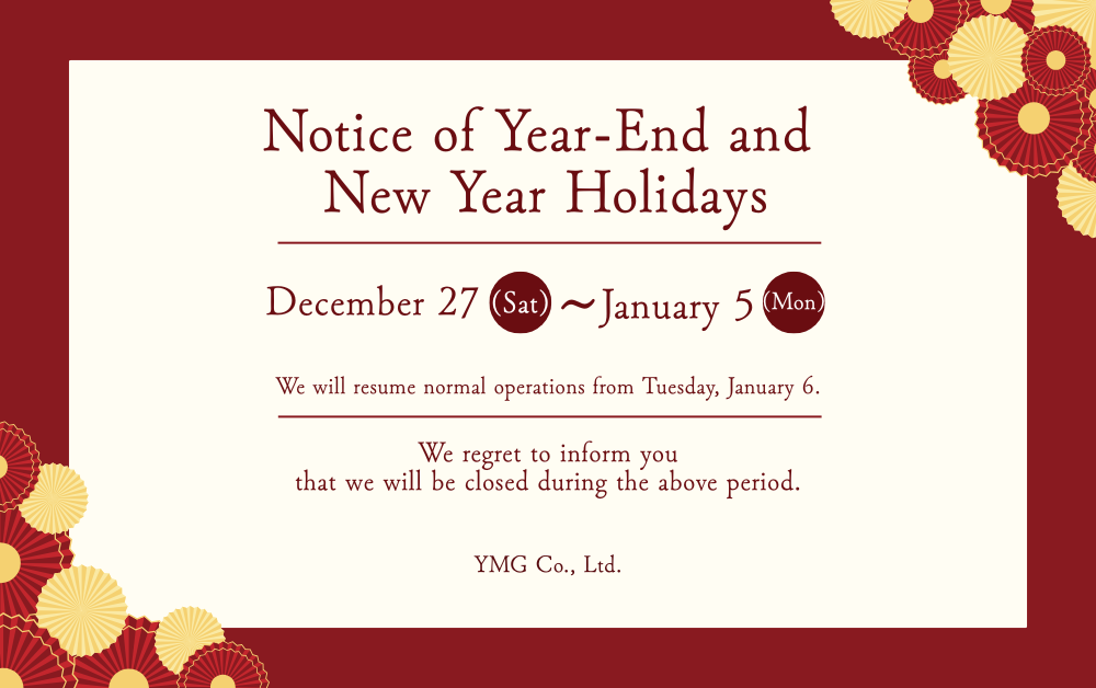 Please be informed that our official will be closed for the New Year holidays during the following period.
